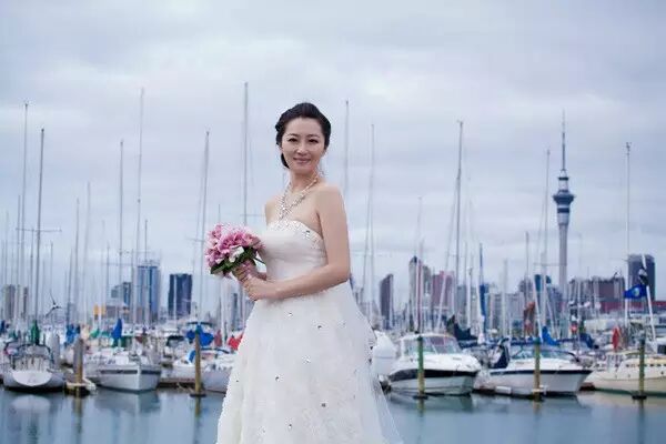 △ 手捧礼花,被奥克兰(Auckland)的千帆所环绕,微微一笑,连海风中都透着幸福的味道。
