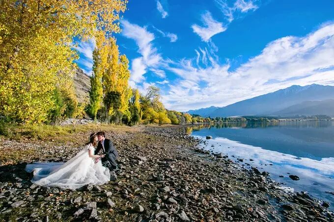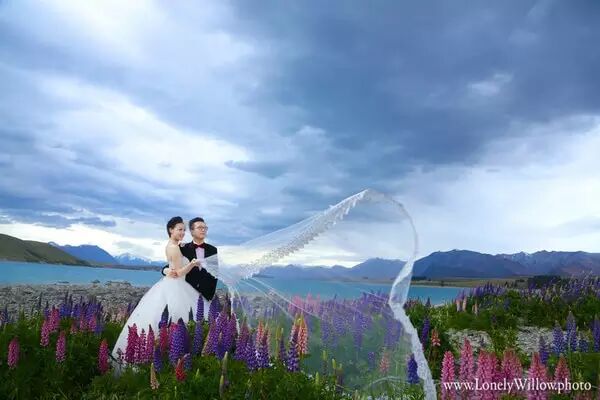 “去新西兰旅游拍婚纱,看到了我梦寐以求的雪山圣湖还有鲁冰花。”