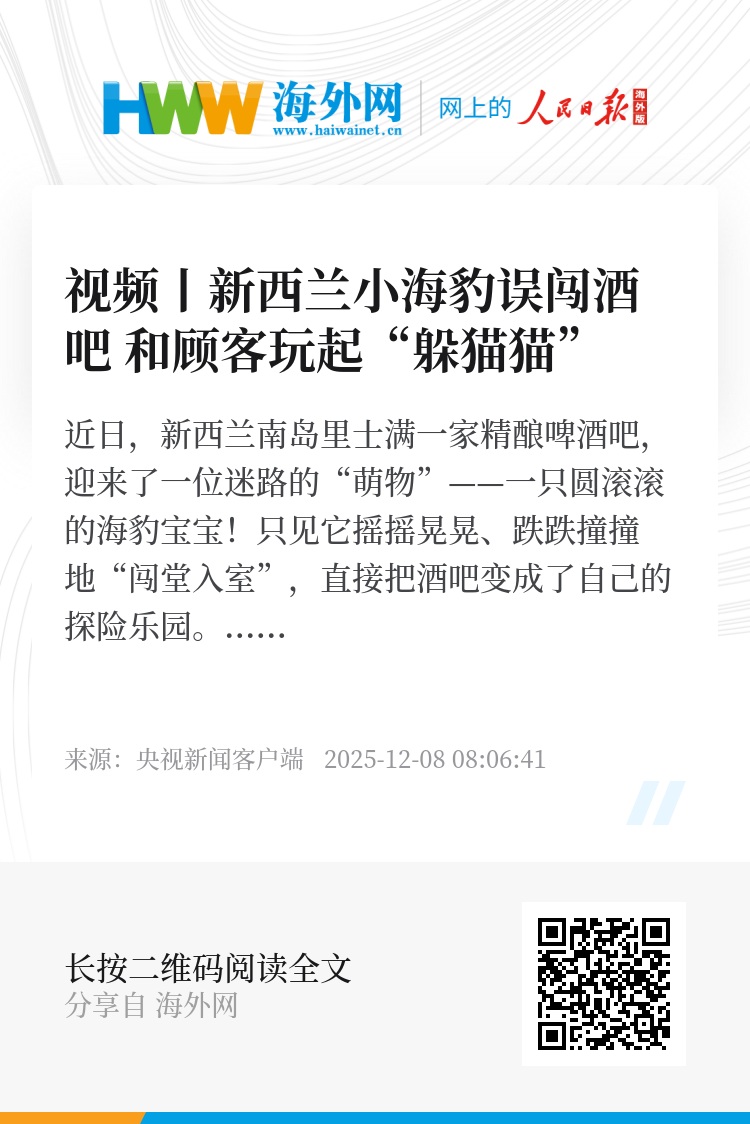 近日,新西兰南岛里士满一家精酿啤酒吧,迎来了一位迷路的“萌物”——一只圆滚滚的海豹宝宝!只见它摇摇晃晃、跌跌撞撞地“闯堂入室”,直接把酒吧变成了自己的探险乐园。
