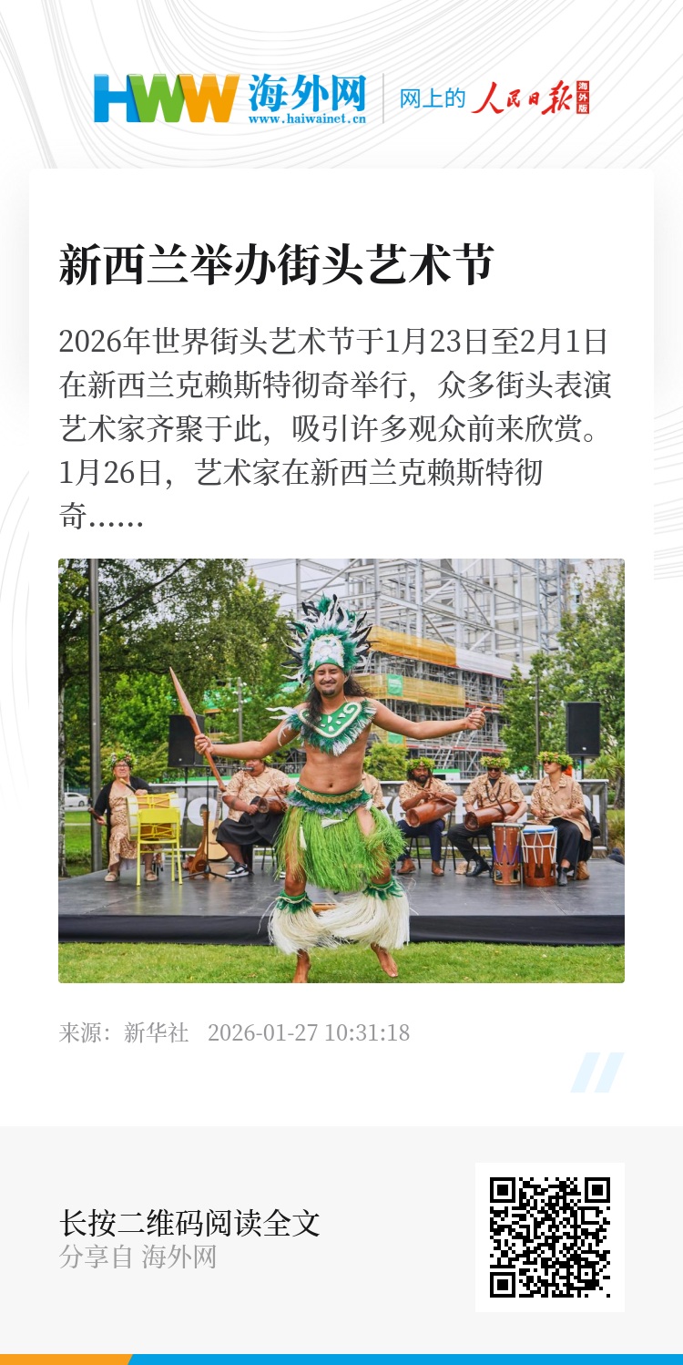 2026年世界街头艺术节于1月23日至2月1日在新西兰克赖斯特彻奇举行,众多街头表演艺术家齐聚于此,吸引许多观众前来欣赏。