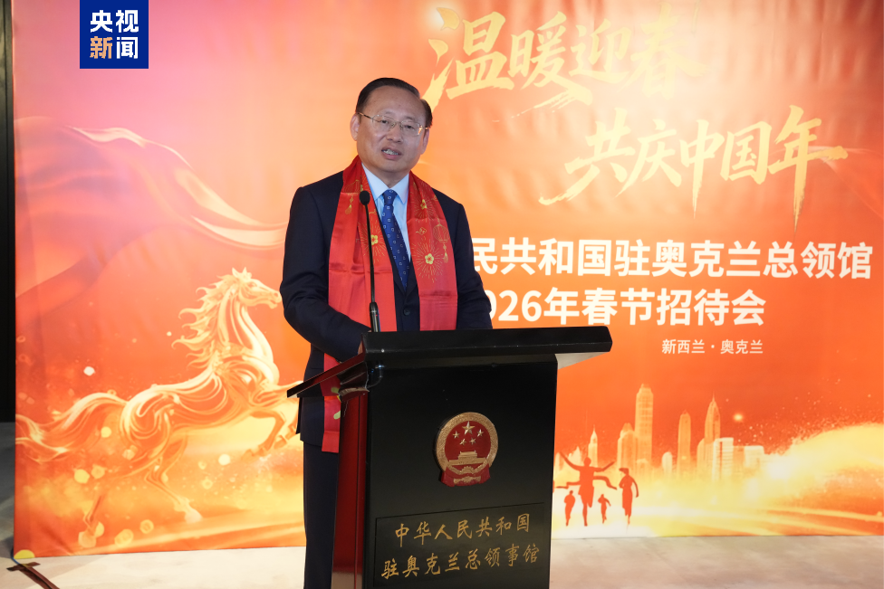 中国驻奥克兰总领事陈世杰在致辞中向现场来宾致以新春祝福。他表示,中新关系在交流合作中走深走实,务实合作成果丰硕,2025年中新贸易额达214.67亿美元,同比增长6.4%。中国已连续12年成为新西兰第一大贸易伙伴、出口市场和进口来源地。人员往来更加便利,中国延长对新实施单方面免签政策,新西兰对持澳大利亚签证的中国游客提供免签待遇。2026年是“十五五”规划开局之年,中国将继续保持经济社会发展良好势头,中新关系也将迎来更大合作空间和发展潜力,他期待大家共同为推动中新关系深入发展贡献新智慧、增添正能量、续写新篇章!